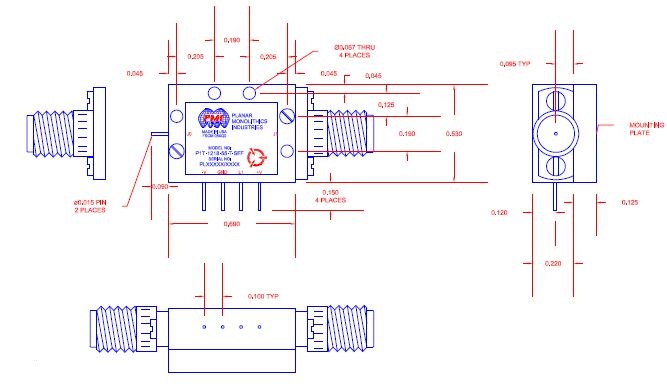 Quantic PMI Model P1T-1218-55-T-SFF is a Single Pole, Single Throw, Absorptive Switch that operates over the 12 to 18 GHz frequency range that has a minimum isolation of 60 dB and a maximum insertion loss of 2.5 dB. This Switch has a maximum switching time of 100 ns and a maximum VSWR of 2:1. This model has SMA female removable connectors and a housing measuring 0.69" x 0.53" x 0.345".